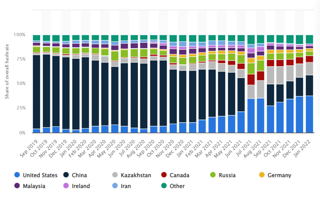 Според IP адресите на т.нар. хешъри, които са използвали определени басейни за добив на биткойни през 2021 г., още